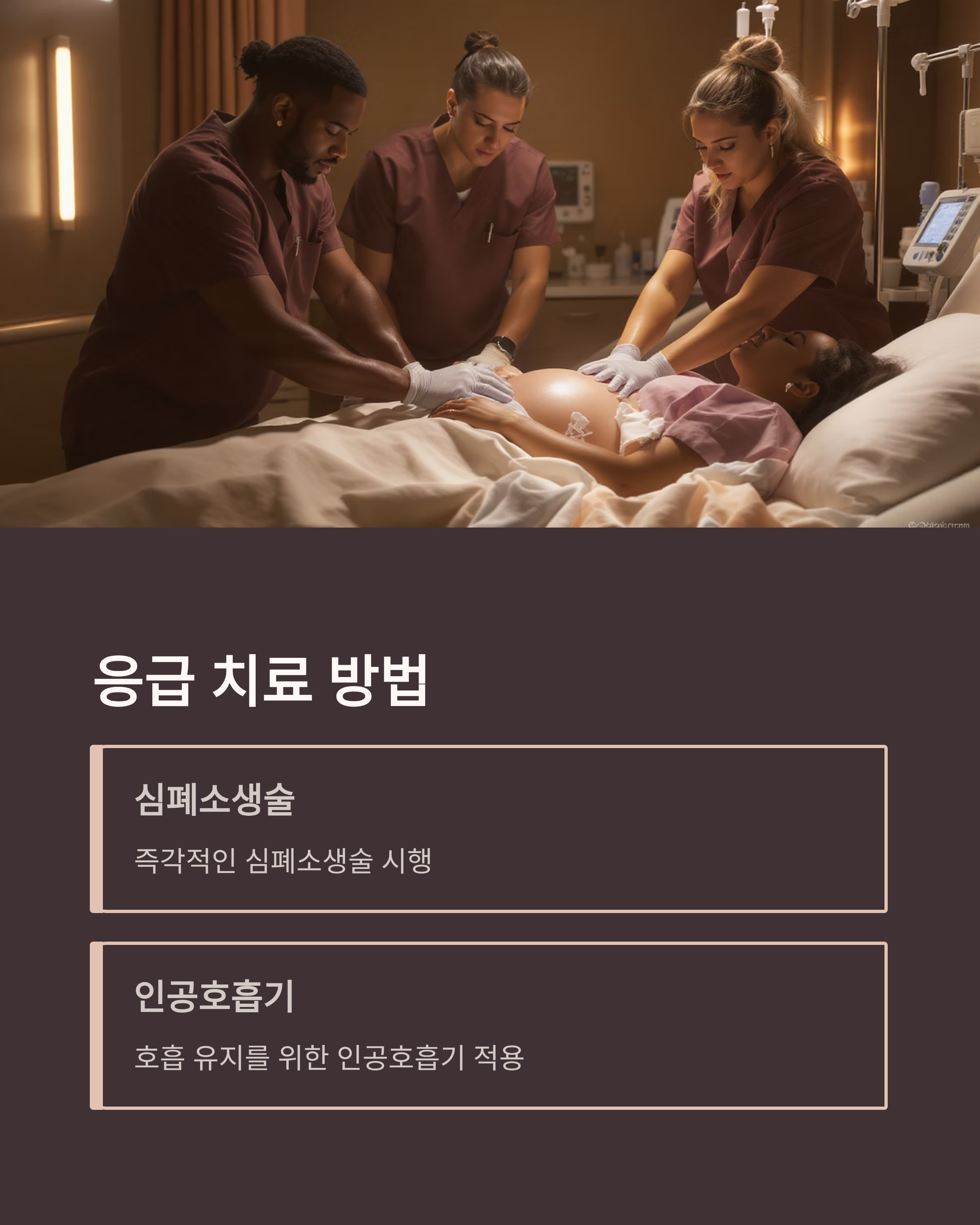 치료 과정에서는 마취과, 산부인과, 응급의학과, 중환자의학과 등의 유기적인 협진이 필수적입니다. 특히 심폐순환을 대체하는 체외막산소화장치(ECMO) 도입이 가능한 병원에서는 생존율을 높이는 데 큰 역할을 할 수 있습니다.