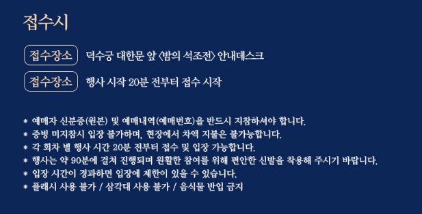 - 접수장소: 덕수궁 대한문 앞 밤의 석조전 안내데스크