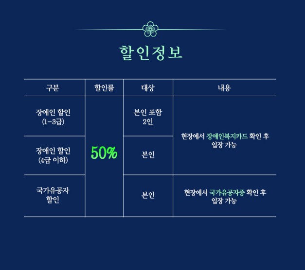 - 당첨자가 장애인이나 국가유공자일 경우에는 할인 적용이 가능합니다.