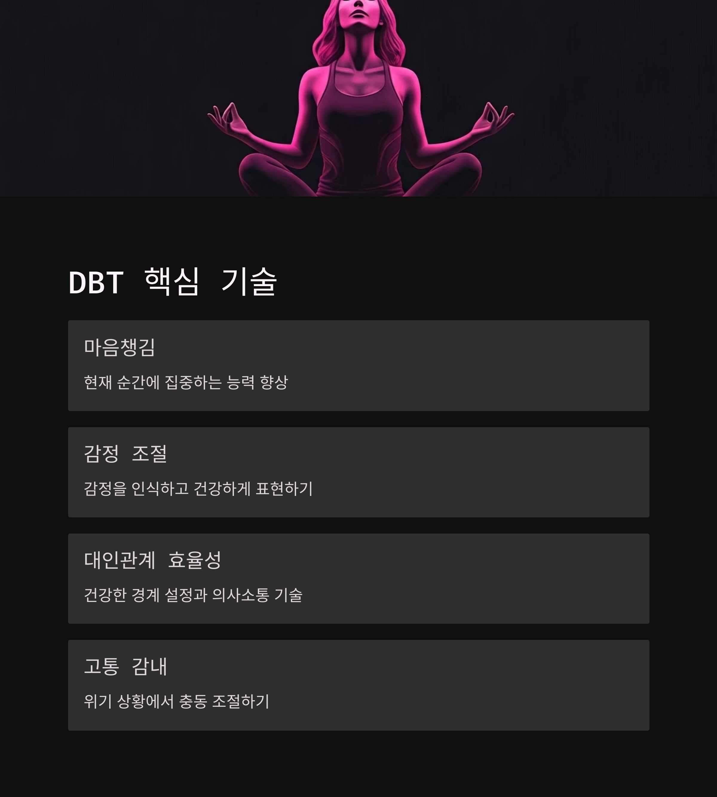 경계선 인격장애는 과거에는 치료가 어렵다고 여겨졌지만, 현재는 다양한 치료 기법들이 효과를 보이고 있습니다. 그 중 대표적인 것이 변증법적 행동치료(DBT)입니다. DBT는 감정 조절 능력 향상, 관계 기술 개발, 충동 조절 등을 중심으로 한 심리치료로, 특히 자해나 자살 충동 감소에 큰 효과가 있는 것으로 알려져 있습니다.