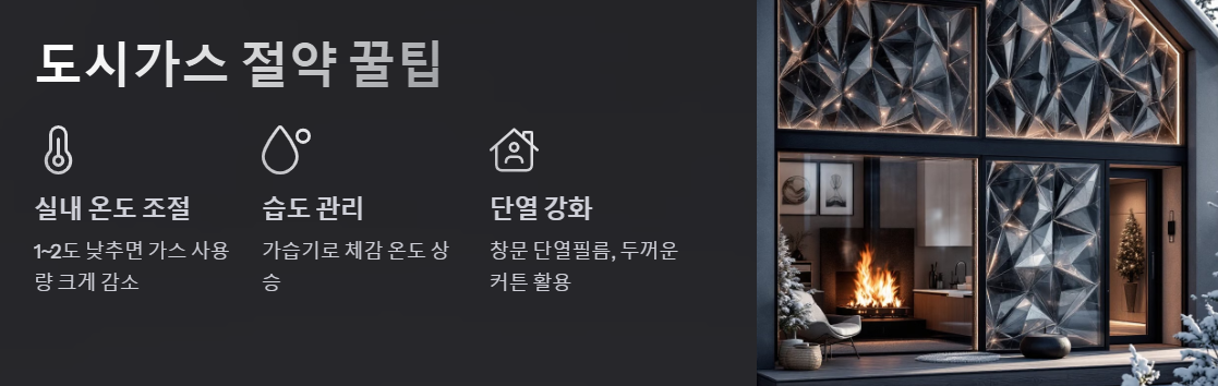 - 실내 온도 조절: 실내 온도를 1~2도 낮추면 가스 사용량을 크게 줄일 수 있습니다.
